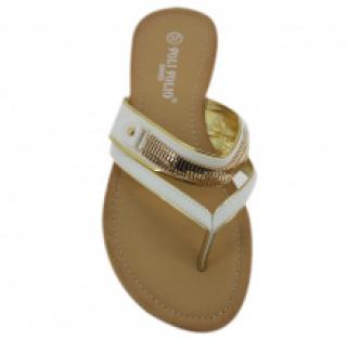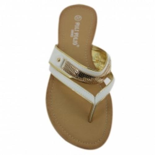 Superbes sandales blanches décorées de chaîne dorée, vendues par lot de 12 paires à petit prix (5.50 € / Unité). Fabriquées en polyuréthane. Dotées d’une semelle d’usure en caoutchouc antidérapant. Disponible en pointures : 36-41. Pour plus d’informations, contactez notre service client au Tél : 0974771480 ou envoyez-nous un mail sur cette adresse : contact@ventegros.fr.
