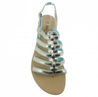 Sandales bleues façon Romain conçues en polyuréthane, livrées par lot de 12 paires à prix compétitif (6.50 € / Unité). Modèle orné d’or blanc façon tropézienne et doté d’une bride bouclée à l’arrière. Équipées d’une semelle d’usure en caoutchouc antidérapante. Pointures disponibles : 36-41. Pour plus d’informations, contactez notre service client au Tél : 0974771480 ou envoyez-nous un mail sur cette adresse : contact@ventegros.fr.