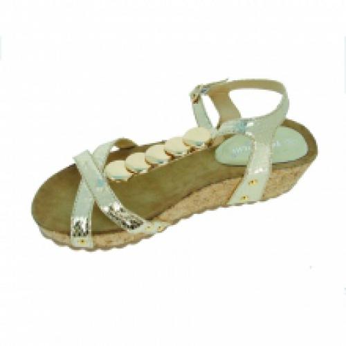 Superbes sandales dorées décorées de sphères sur la bride façon salomé, vendues par lot de 12 paires à petit prix (7.50 € / Unité). Conçues en similicuir et montées sur une semelle en liège. Pointures assorties : 36-41. Pour plus d’informations, contactez notre service client au Tél : 0974771480 ou envoyez-nous un mail sur cette adresse : contact@ventegros.fr.