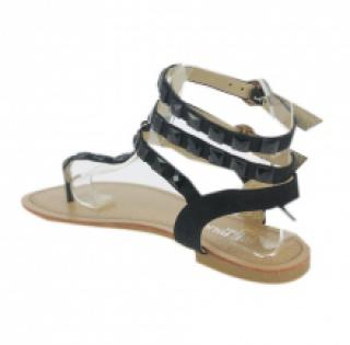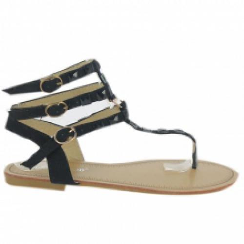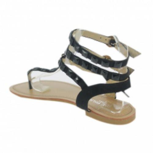 Déstockage de sandales noires façon spartiate, cloutées pierres assorties et fermées par trois brides bouclées sur la cheville. Montées sur une semelle d'usure en gomme antidérapante. Livrées par lot de 12 paires à prix bradé sur ventegros.fr (3.00 € / Unité). Pointures assorties : 36-41. Pour plus d’informations, contactez notre service client au Tél : 09 74 77 14 80 ou envoyez-nous un mail sur cette adresse : contact@ventegros.fr.