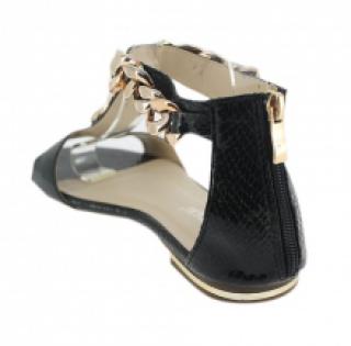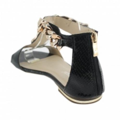Lot de 12 paires de sandales noires façon reptile vernis ornées de chaîne, vendues à prix compétitif (6.00 € / Unité). Fabriquées en polyuréthane. Montées sur une semelle d’usure en gomme antidérapante. Lot disponible en pointures : 36-41. Pour plus d’informations, contactez notre service client au Tél : 0974771480 ou envoyez-nous un mail sur cette adresse : contact@ventegros.fr.