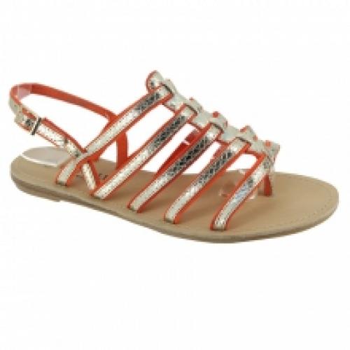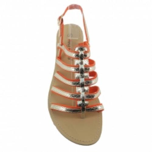 Lot de 12 paires de sandales orange et or blanc façon tropézienne, vendues à un prix concurrentiel (6.50 € / Unité). Sandales en polyuréthane montées sur une semelle d’usure en gomme antidérapante. Lot disponible en pointures : 36-41. Pour plus d’informations, contactez notre service client au Tél : 0974771480 ou envoyez-nous un mail sur cette adresse : contact@ventegros.fr.