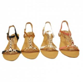 Lot de 12 paires de sandales ornées de chaînes dorées et strass à petit prix (6.48 € / Unité). Montées sur une semelle en gomme antidérapante avec talon légèrement compensé. Matière : polyuréthane. 4 couleurs au choix : noir, camel, bleu, rose. Pointures assorties : 36-41. Pour plus d’informations, contactez notre service client au Tél : 0974771480 ou envoyez-nous un mail sur cette adresse : contact@ventegros.fr.
