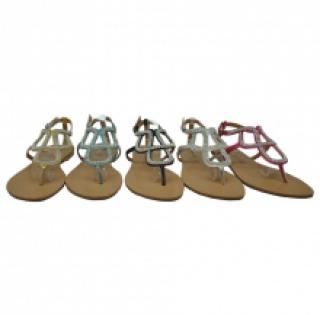 Lot de 12 paires de sandales fashions avec brides fantaisies serties de strass, livré à prix abordable (8.10 € / Unité). Modèle conçu en polyuréthane, équipé d’une bride bouclée à l’arrière et d’une semelle d’usure en gomme antidérapante. Couleurs au choix : noir, argent, or, bleu et rose. Disponible en taille : 36-41. Pour plus d’informations, contactez notre service client au Tél : 0974771480 ou envoyez-nous un mail sur cette adresse : contact@ventegros.fr.
