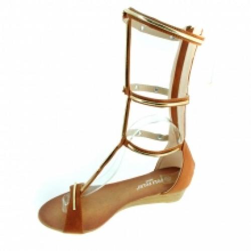 Adorables sandales spartiates compensées marron avec des détails dorés sur les brides, livrées par lot de 12 paires à petit compétitif (12.00 € / Unité). Fabriquées en similicuir. Tout monté sur une semelle d’usure en gomme antidérapante. Pointures assorties : 36-41. Pour plus d’informations, contactez notre service client au Tél : 0974771480 ou envoyez-nous un mail sur cette adresse : contact@ventegros.fr.
