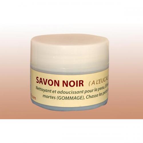 Le savon noir à l'eucalyptus naturel est une pâte végétale exfoliante conçue à partir de chair d'olives pressées. Le savons noir à l'eucalyptus sont très riche en vitamines E, ils chassent les toxines, les impuretés et les peaux mortes. Utilisé régulièrement, il raffermit votre peau : elle devient plus douce et satinée. Application du savon noir à l'eucalyptus : Nous vous conseillons de l'appliquer de préférence sur une peau chaude et mouillée, cela favorise la dilatation des pores et permet un nettoyage en profondeur. Prendre une noisette de savon noir au creux de la main, puis l'étaler sur le corps. Un film crémeux, peu moussant va se former ; massez-vous pendant quelques minutes pour aider l'action du savon noir à l'eucalyptus, puis rincer abondamment.