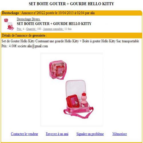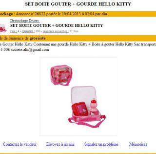 SET BOITE GOUTER + GOURDE HELLO KITTY Demi gros