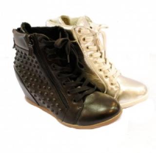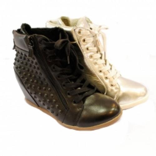 Profitez de ce lot de 12 paires de baskets pour femme vendu à prix abordable (10.80 € / Unité). Sneakers compensées cloutées fabriquées en polyuréthane, équipées d'un système de laçage et zip côté avec doublure fourrée et semelle d'usure en élastomère. Pointures assorties : 36-41. Plusieurs couleurs au choix : black, silver et gold. Pour plus d’informations, contactez notre service client au Tél : 0974771480 ou envoyez-nous un mail sur cette adresse : contact@ventegros.fr.