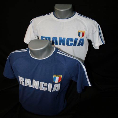 Superbe tee shirt au couleur de la France pour préparer la coupe d’Europe ! Ce tee shirt manches courtes, au col rond, est brodé FRANCIA sur le milieu de la poitrine, ainsi qu’un écusson au couleur du drapeau coté cœur. Liserais rebrodé du col au bout de la manche. Effet double col bicolore. Ce modèle se décline en bleu, broderie blanche et blanc, brodé de bleu.