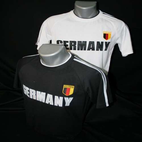 Superbe tee shirt au couleur de l’Allemagne pour préparer la coupe d’Europe ! Ce tee shirt manches courtes, au col rond, est brodé GERMANY sur le milieu de la poitrine, ainsi qu’un écusson au couleur du drapeau coté cœur. Liserais rebrodé du col au bout de la manche. Effet double col bicolore. Ce modèle se décline en noir, broderie blanche et blanc, brodé de noir.