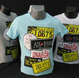 Tee-shirt aux manches courtes, col rond, superbe sérigraphie sur la poitrine de plaque d’immatriculation américaine aux couleurs vifs. Très beau tee shirt tendance pour les ados et autre Fashion victime ! Model existant en blanc, noir, gris et turquoise.