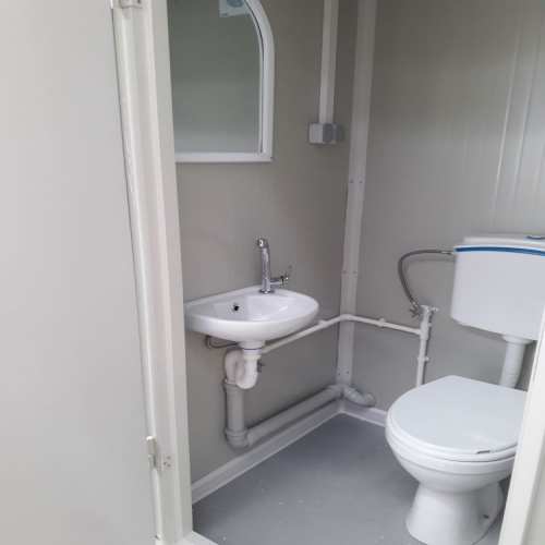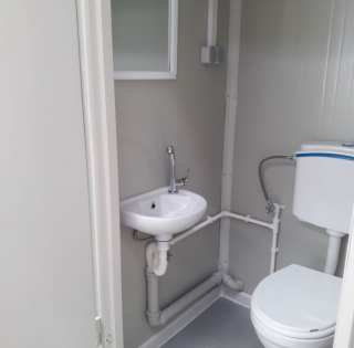 Bloc sanitaire à l'anglaise, bloc EASYBOX, bungalow, module, abris de chantier, préfabriqué, sanitaire à l'anglaise, raccordable, isolé panneaux sandwich. Prise de fourche .