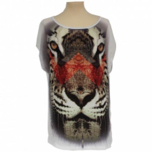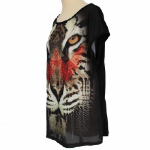 Ravissant top imprimé tête de tigre, offert par lot de 12 pièces à prix compétitif sur ventegros.fr (6.75 € / Unité). Modèle équipé d’une breloque fantaisie dorée au dos. Majorité de fabrication en coton. Couleurs assorties : noir, blanc. Tailles : S/M, M/L. Pour plus d’informations, contactez notre service client au Tél : 09 74 77 14 80 ou envoyez-nous un mail sur cette adresse : contact@ventegros.fr.