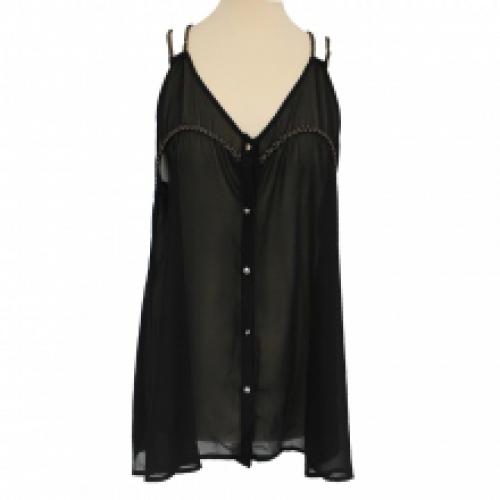 Top transparent muni d'une patte de boutonnage devant avec poitrine et bretelles tressées, offert par lot de 12 pièces à mini-prix sur ventegros.fr (5.40 € / Unité). Modèle fabriqué entièrement en polyester. Couleurs assorties : noir, blanc, rose, bleu. Tailles assorties : S/M, M/L. Pour plus d’informations, contactez notre service client au Tél : 09 74 77 14 80 ou envoyez-nous un mail sur cette adresse : contact@ventegros.fr.