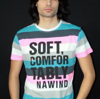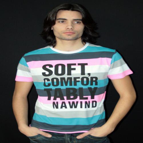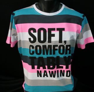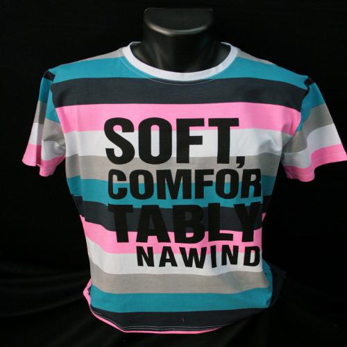 Tee shirt manches courtes, col rond, tee shirt a rayures horizontales aux couleur de l’été tells que des rayures vert, rose, bleu et blanche. Sérigraphies texte en anglais sur la poitrine, ce modèle existe en trois coloris : vert, turquoise et marine.
