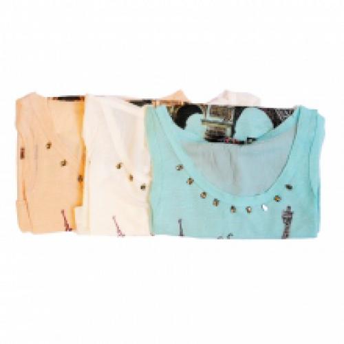 Tunique hyper tendance vendue par lot de 10 pièces à un prix concurrentiel (3.38 € / Unité). Tunique avec col orné de strass et motif des monuments de Paris (tour Eiffel, arc de triomphe...). Couleurs assorties : blanc, bleu, corail et beige. Tailles disponibles: S/M et L/XL. Pour plus d’informations, contactez notre service client au Tél : 0974771480 ou envoyez-nous un mail sur cette adresse : contact@ventegros.fr.