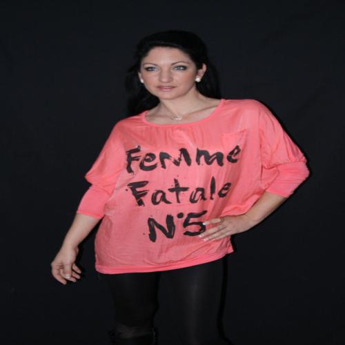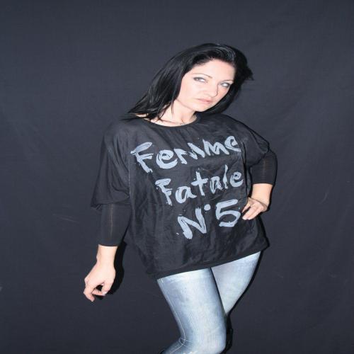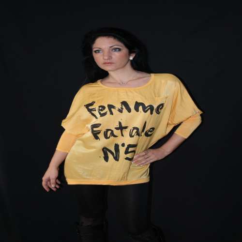 Kalliente vous présente une tunique de soie et de coton, sérigraphie « femme fatale n°5 », très jolie model de tunique longue et souple, au col rond et aux manches chauve-souris, a découvrir très vite en blanc ,noir, vert pale ,café, jaune , corail et gris. Taille unique pour ce model ample et léger.