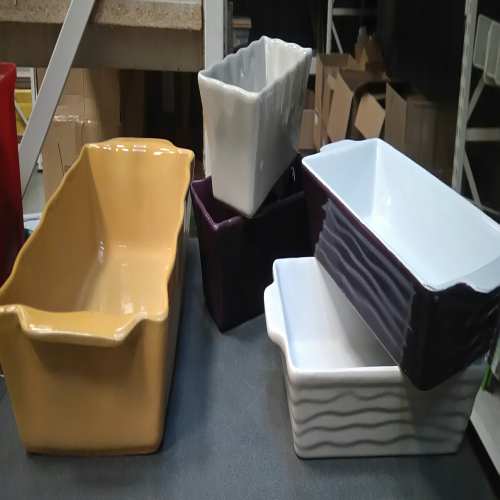Comprend : Plats à gratin 30x17x5.5 37x21x8 coloris divers Plats à cake 24x11x7.5 coloris divers Assiettes diam 27