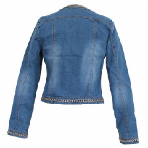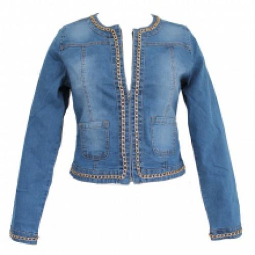 Veste jeans bordée de chaîne dorée