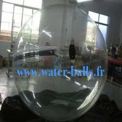 Le Water-Ball mesure 200 centimètres de diamètre, et il y a assez d’air a l’intérieur pour que vous puissiez y rester 10/15 minutes selon condition d'utilisation. Elle s’utilise sur l’eau sur gazon ou terre pour crée un spectacle hors de l'eau.
