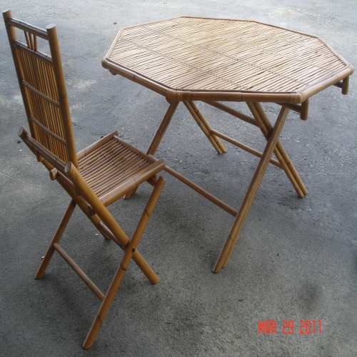Set 8 chaises pliantes et table pliante vernis octogonale 152cms en bambou haute densité. Déjà distribué en France pour la location, la restauration ...