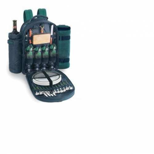 Sac à dos pique nique bleu foncé en toile poli avec accessoires.